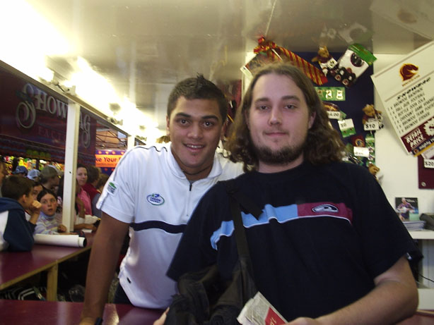 Me and Broncos fullback 'Karmichael Hunt', at the Broncos stand.