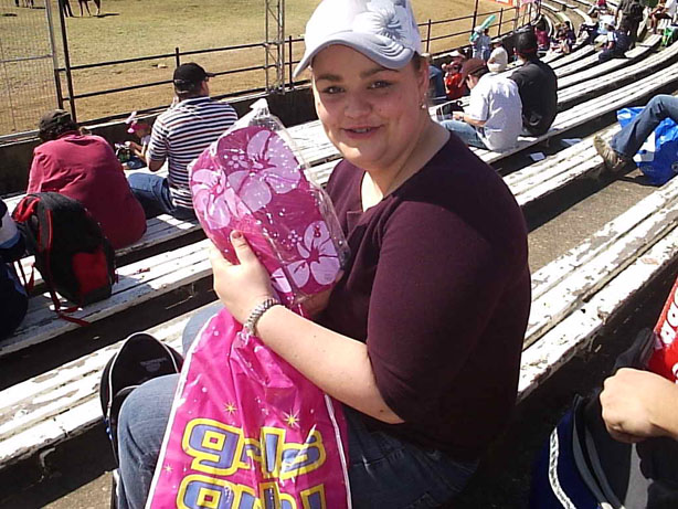 Courtney and her free showbag hat. I liked thgat hat.