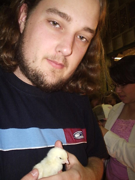 Me and little chicky. Hes so cute... so is the chicken.