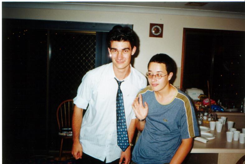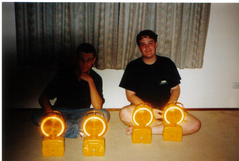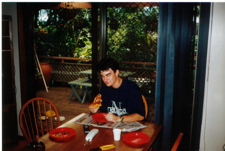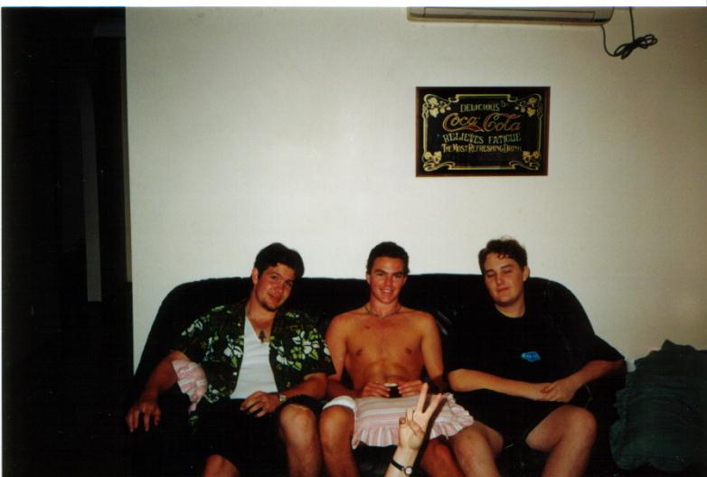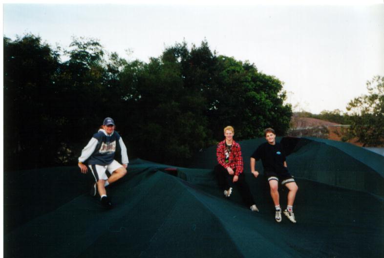 After the movie marathon: Doug, Peter and I on top of the netting above the playground at a local school. Stuart was too pissweak to come on with us so he took the picture.