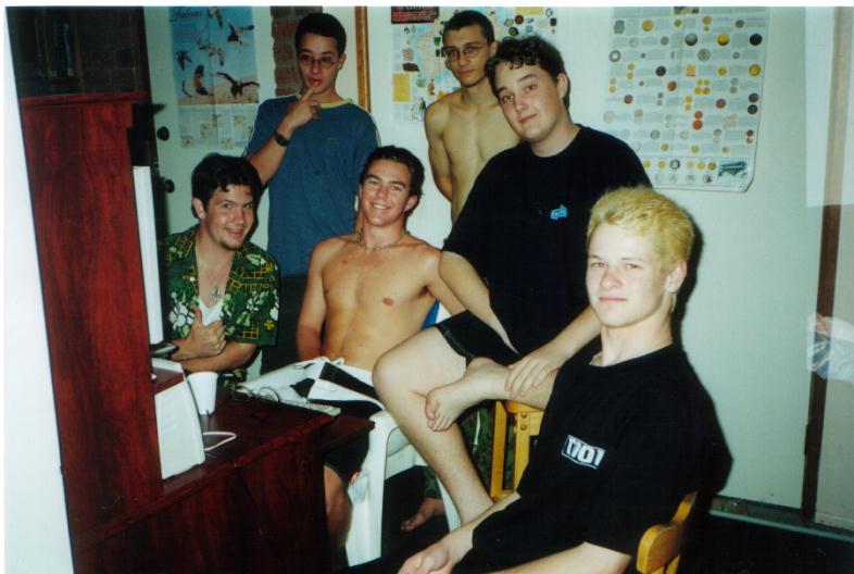 Internet pornographic viewing: Notice where all hands are. (Clockwise): Robbo, Stuey, Yongas, Ben, Me and Peter.