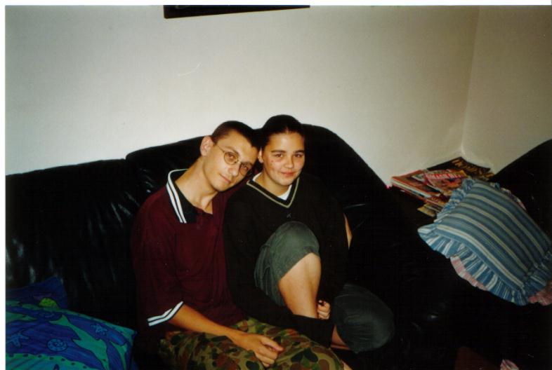 Okay 2 photos superimposed themselves over one another so bare with me: Robbo on the couch, Stuey and Jacqui on the ground. But behind that photo is a picture (if you can see it) of Peter Carlisle carrying a Keep Left sign... pole and all.