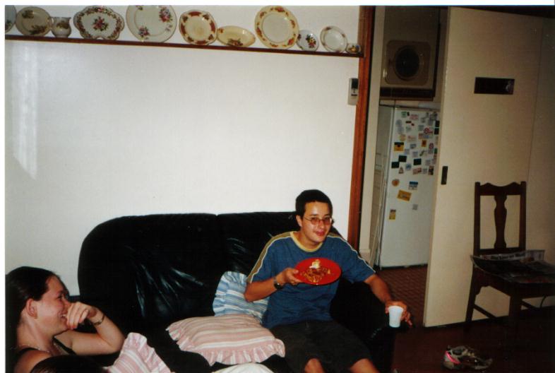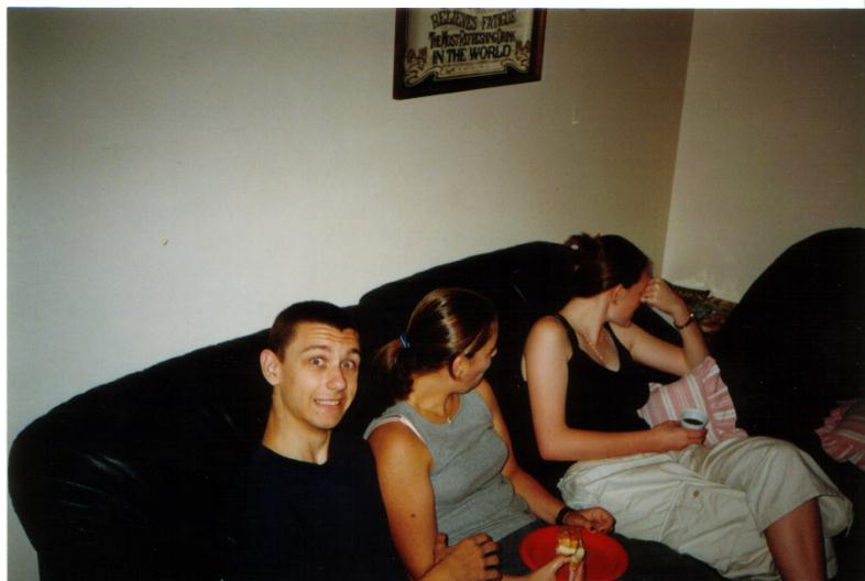 Stuart, Adam and Me on the couch, and Jacqui's hand in the way (I think).
