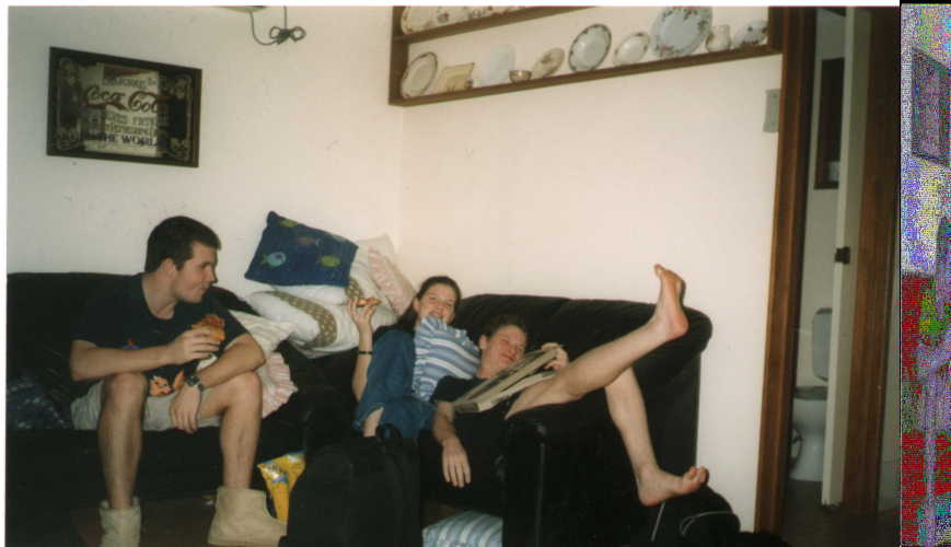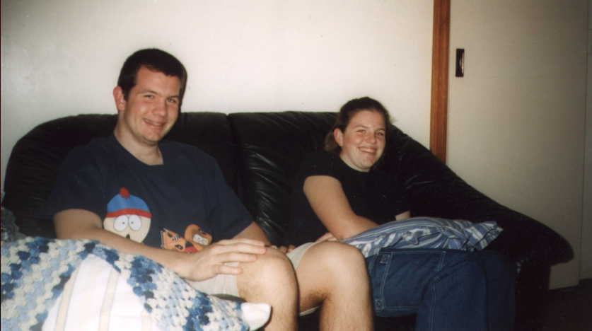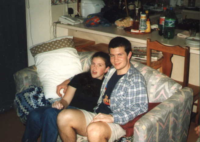 This is a picture of Stuart and Jacqui before they watched "The Rocky Horror Picture Show". Sitting together like good little catholic children.